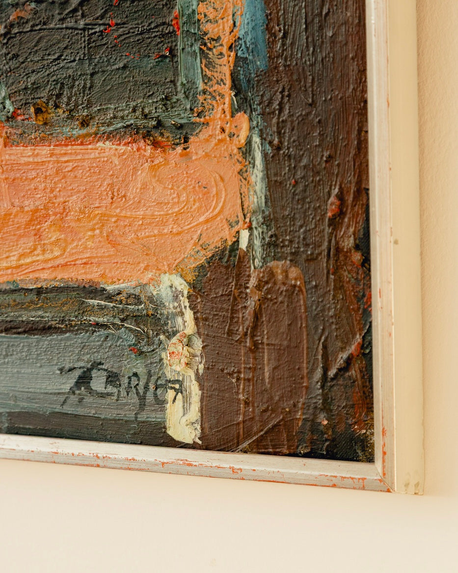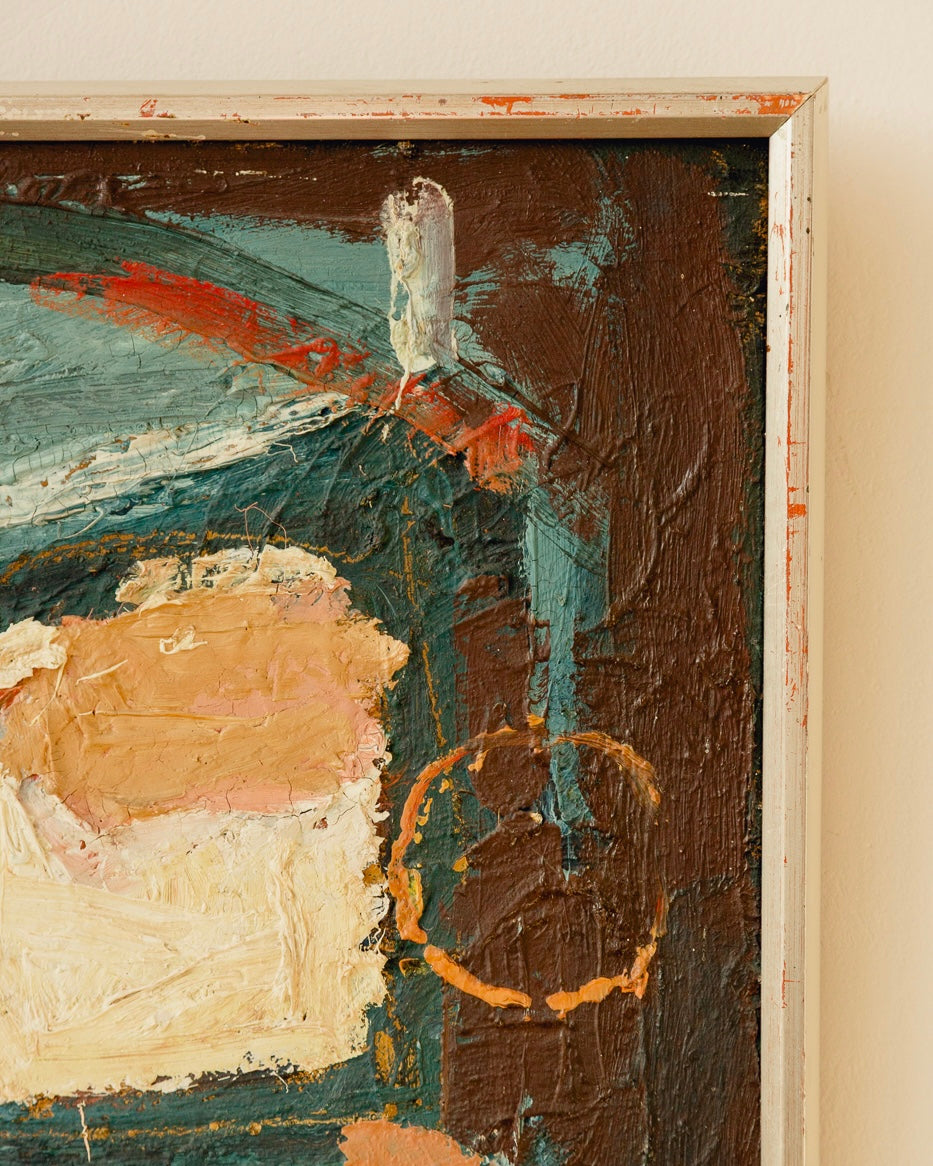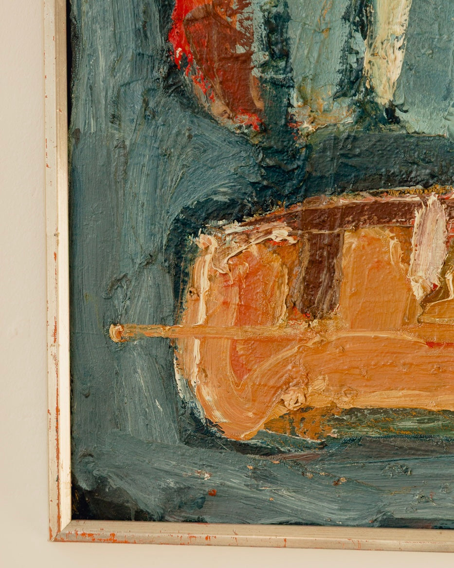 A wonderful signed mid century Swedish oil dated 1967. Stunning colours and composition with a simple silver wooden frame, it would look wonderful in any setting. Good vintage condition with just a few scuff marks on the frame.