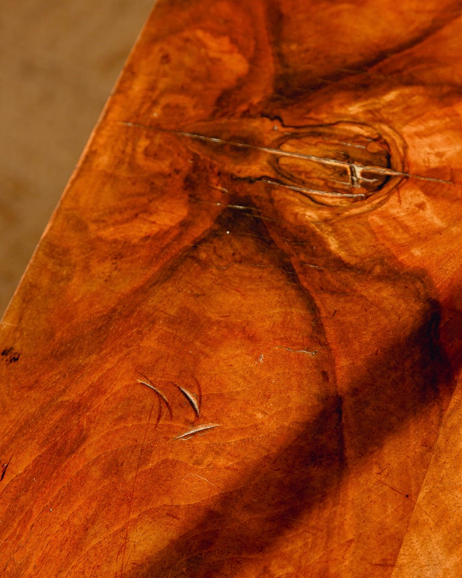 Beautiful Art Deco desk in burl walnut veneer. Ample storage with two deep drawers and a timelessly chic design. It would also make a great console. It’s a complete work of art from every angle. The dark green deco knobs and warmth and patterns in the wood are stunning. Beautiful patina with only some minor signs of age which are to be expected with a piece of this age. Shown in images.