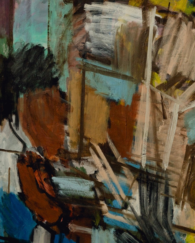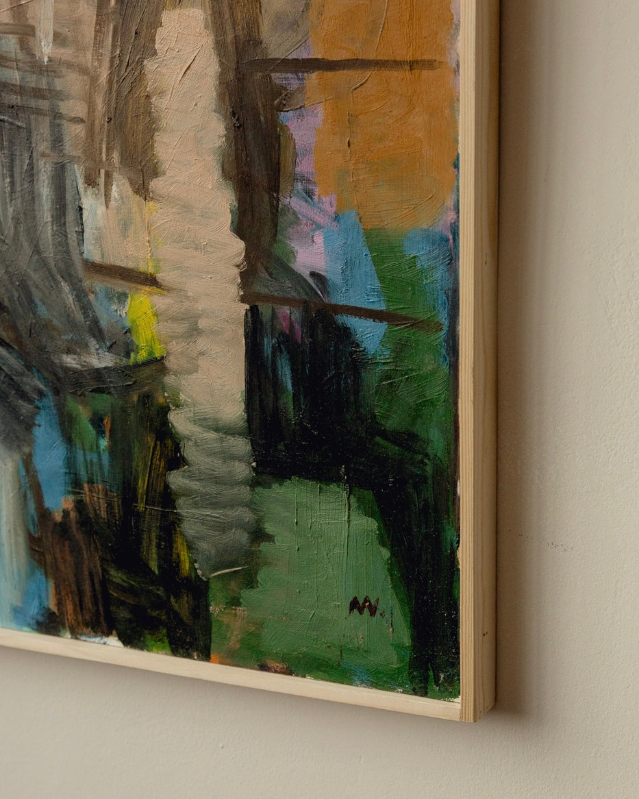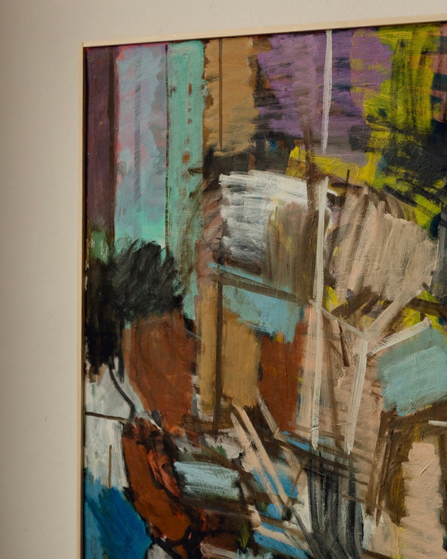 Stunning large scale Swedish oil painting by Magnus Wijkström (1957-2019). Incredible colours, textures and movement in this abstract piece depicting the painter at work. In fantastic vintage condition in a simple artists frame. Acquired from the family’s private collection and signed bottom right corner.