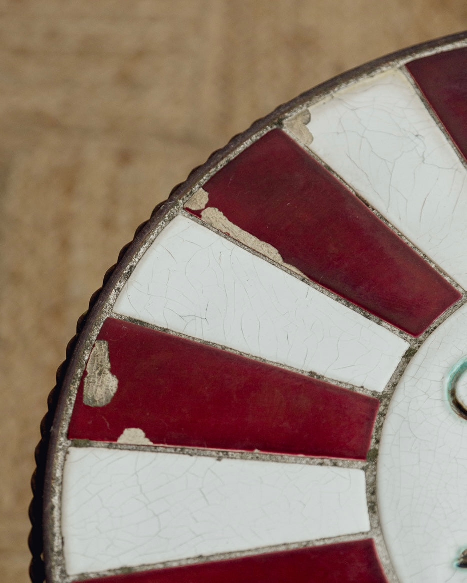 Stunning ceramic topped 1930’s French side table. Incredibly rare and unique these are very hard to come by. It has a beautiful age appropriate patina with a wonderful vibrancy to the glaze still and structurally very sound. It would add a wonderful injection of colour and personality to any setting.