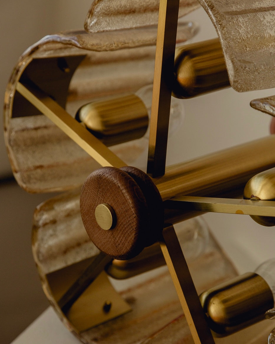 Incredible chandelier designed in the style of Fagerlund, Sweden, from around 1960. It features five handmade glass leaves mounted on brass arms. The hand blown glass creates a beautiful warm glow when lit. This exceptionally high-quality, handcrafted piece would make a wonderful addition to any space. Pristine condition with minimal patina it’s be rewired and is ready to hang. Fully adjustable chain fitting.