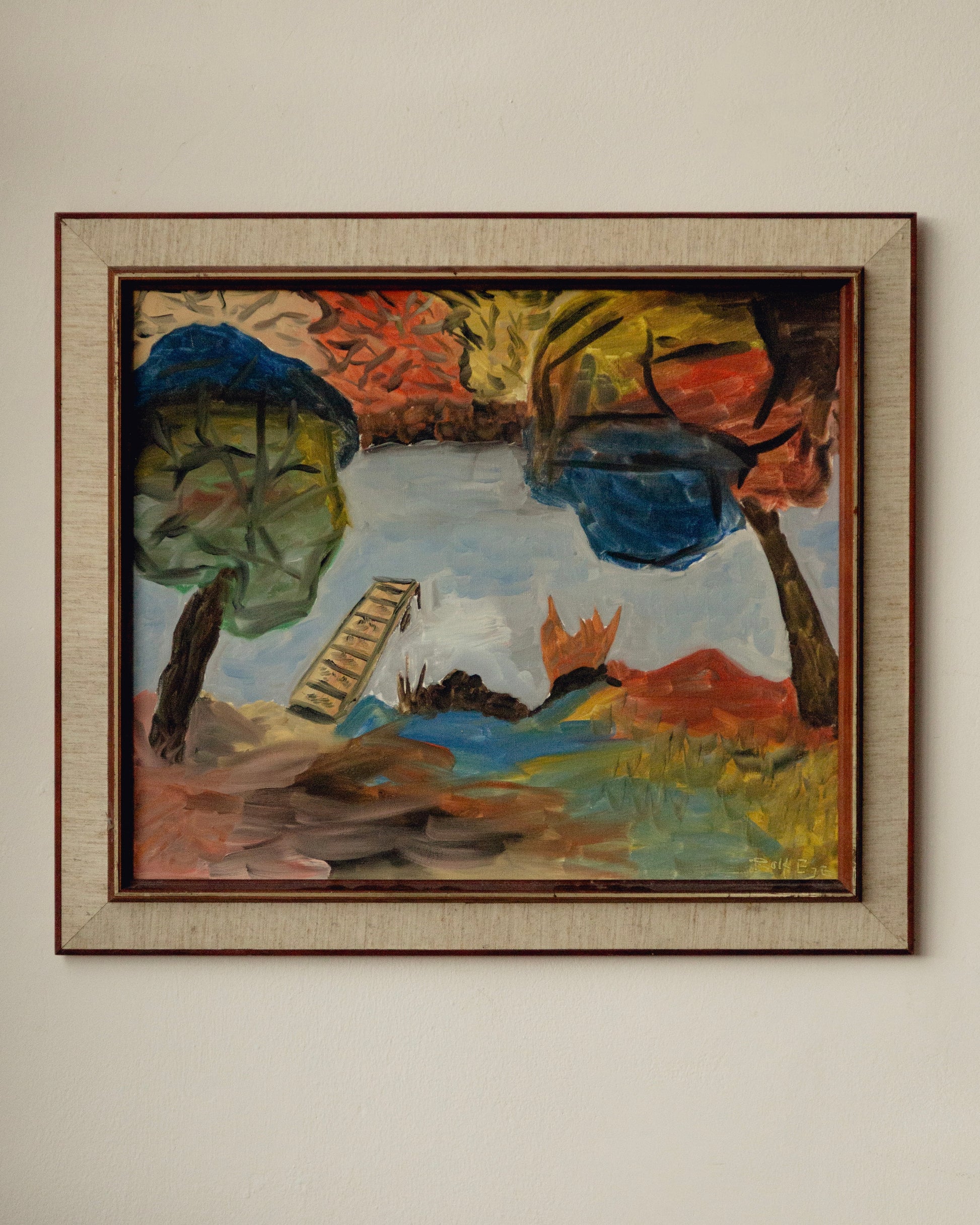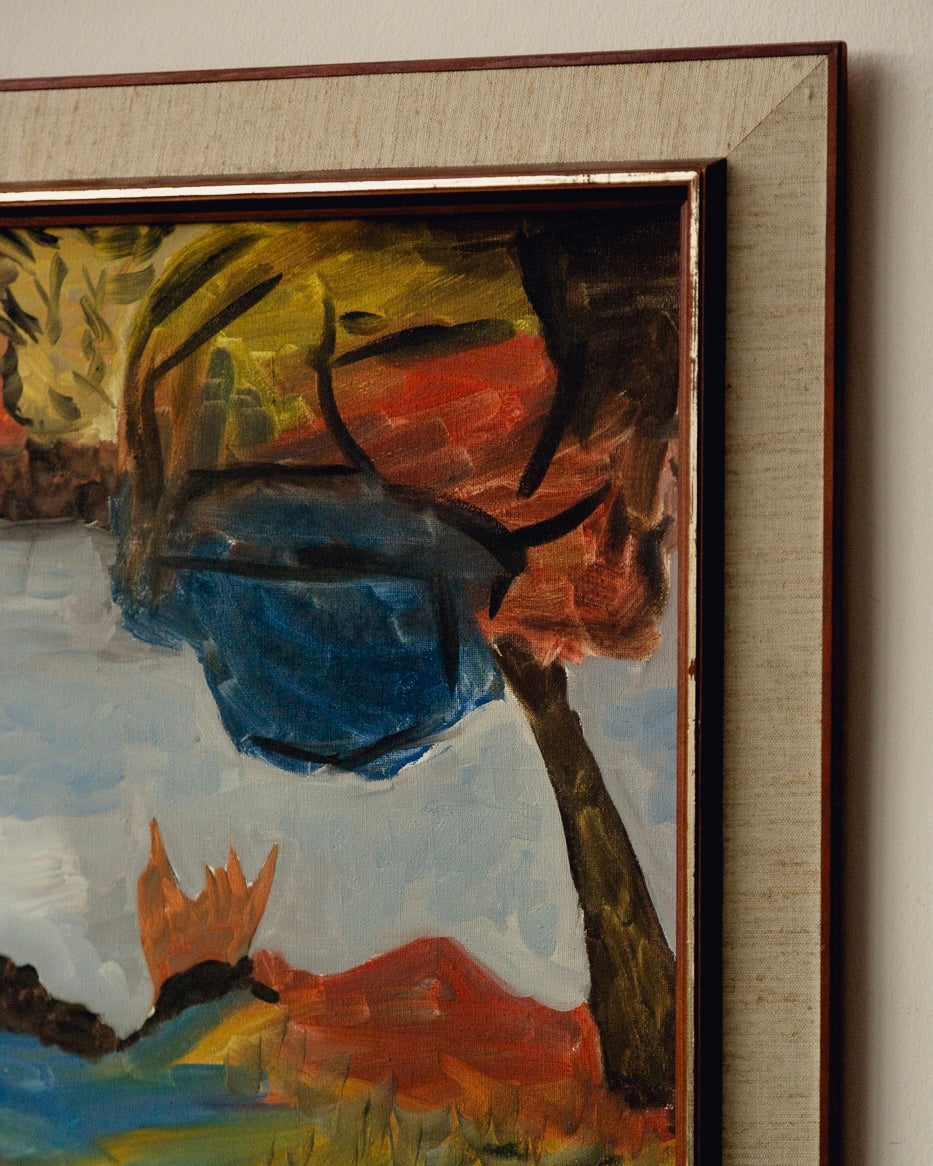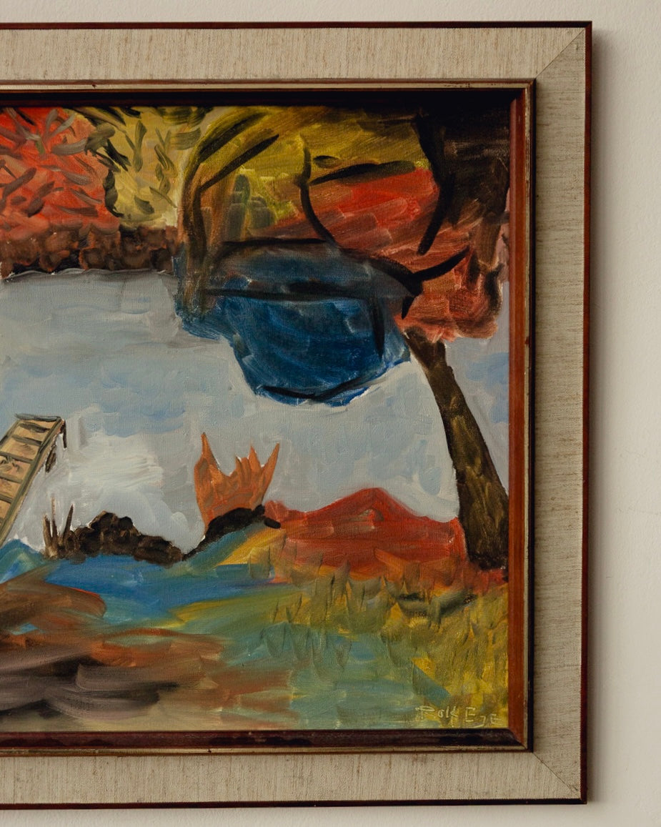 Beautiful colours and textures in this Autumnal landscape. Sourced in Sweden and signed by the artist it’s in great vintage condition with a simple linen mounted wooden frame.