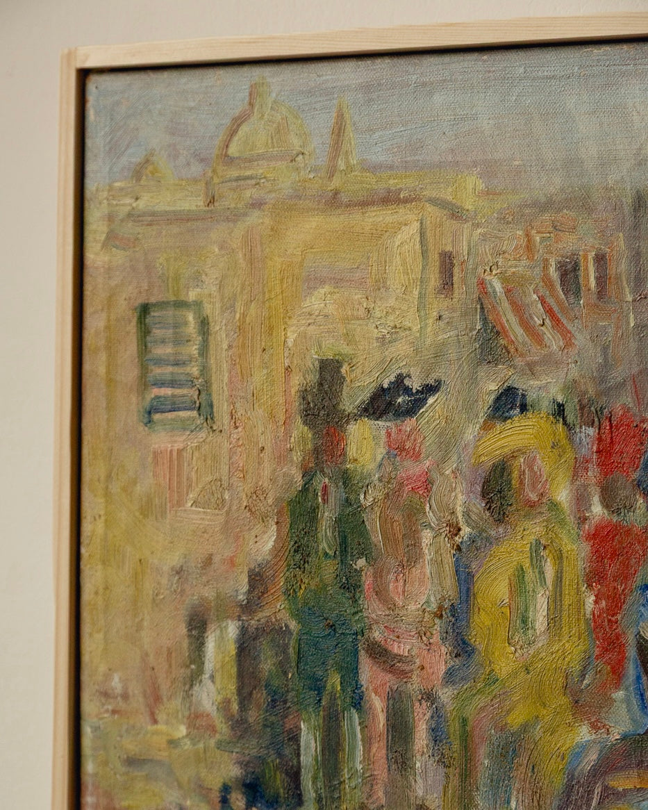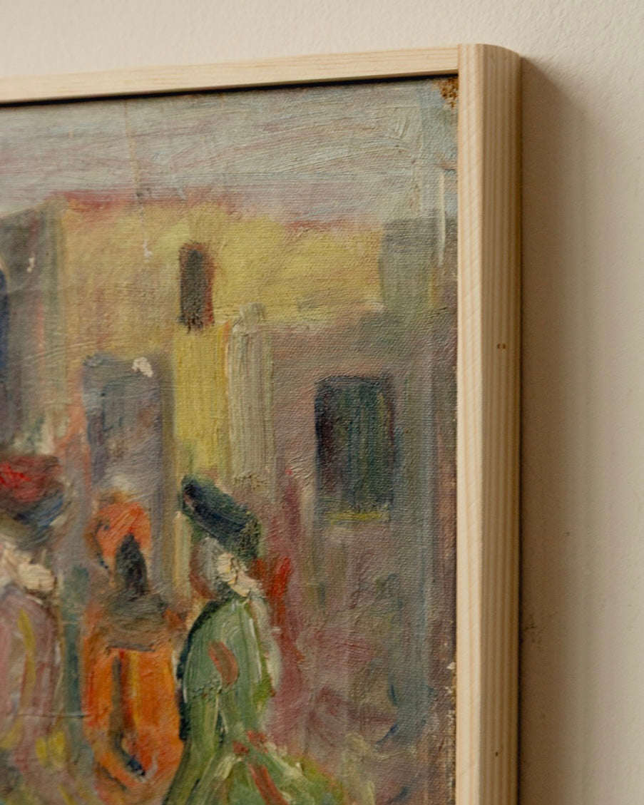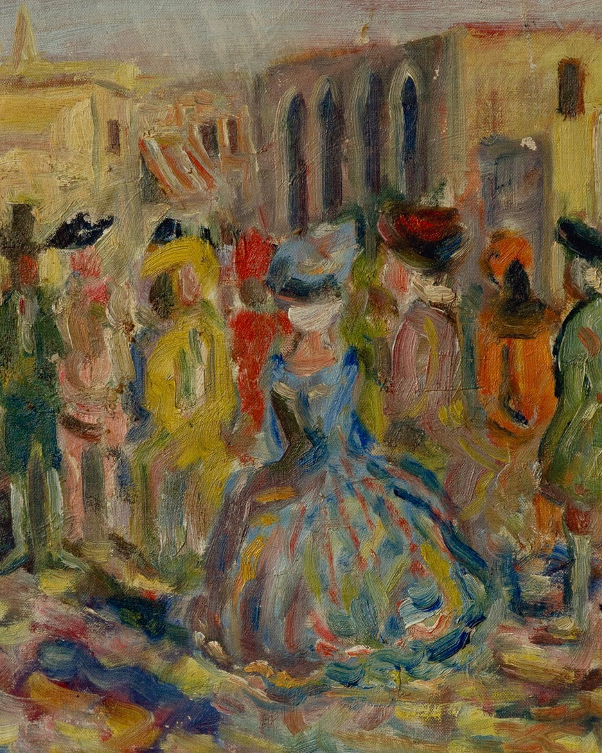 A wonderfully playful and joyous oil on canvas by Danish artist Erik Larsen (1902-1975) depicting a rococo scene. Great vintage condition with minimal wear in a simple artists frame. The texture and movement in this piece are mesmerising. Signed on the verso.